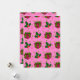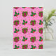 Det här julkortet har retro röda julklappar med gröna band på en rosa bakgrund med julgransgrenar och bär.