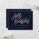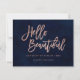 Presentkort chic rosa guld hello marinblå inbjudningar
