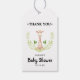 Presentkort för baby shower med liten giraff presentetikett