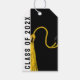 Kreativa presentkort för examensfirande med svart hatt och gulddusk för studenter som går ut gymnasiet eller universitetet. Redigera texten för att lägga till årtal. Lägg till studentens namn för ytterligare anpassning.
