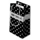 Den grafiska designen består av ett vitt julträd ikon som upprepas i förskjutna rader mot en svart bakgrund för att skapa ett sömlöst ikoniskt julträdsmönster. Högtidlig design som passar alla åldrar, privat eller professionell användning.