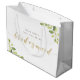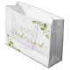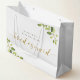 Specialdesignad "Vill du vara min brudtärna" presentpåse för brudtärna förslagspresenter med guld kalligrafi och vattenfärg grön design.