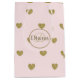 En elegant och minimalistisk presentpåse med ett monogram-bokstav (som kan vara initialen till ditt namn eller logotyp) och namn på ljusrosa gyllene hjärtan. Perfekt som presentpåse för alla typer av fester, antingen födelsedagsfester eller företagsarrangemang! Om du behöver hjälp med att anpassa denna produkt, vänligen kontakta mig med hjälp av meddelandeknappen nedan och jag hjälper dig gärna.