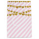 Presentpåse med rosa och vita hjärtan i guld för födelsedagsfest. Matchande artiklar finns tillgängliga.