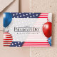 Detta pulserande vykort är en patriotisk hyllning till presidentens dag, med en dynamisk utformning av stars och stripes i den amerikanska flagga röda, vita och blå färg. Postkortets framsida är försedd med det fet påstående "LYCKLIG PRESIDENT'S DAY" centrerad överst, med underrubriken "FÖRENTA STATERNA AV AMERIKA" precis nedanför, båda mot bakgrund av det stjärnspräglade mönster och vågrät rand. Det högtidliga budskapet är två ballonger, en i blått och en i rött, ge vykortet en festlig känsla. Denna utformning fångar helgdag anda, skapar det som ett val av perfekt för att skicka er talmans dag hälsning eller för använda som en inbjudan till ett tema.