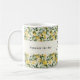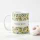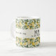 En mugg dekorerad med ett citronmönster. Text: Press dagen. Personalisera och lägg till dina monograminitialer och namn.