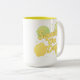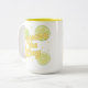 En livfull tvåtons mugg med livliga citroner, färska lime skivor och den glada motiverande frasen Pressa dagen. Den ljusa citruskonsten och soliga färgpaletten tillför energi och positivitet till morgonrutiner, kontorspauser och genomtänkta presenter. Perfekt för kvinnor som uppskattar lekfull, uppiggande, vackert illustrerad dryckesvaror med en fräsch, sommarlik känsla.