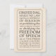 Texten i det första ändringsförslaget som skyddar religionsfriheten, friheten att delta i tal och friheten att delta i fredliga sammankomster. Inbjudan till perfekt för ett medie- eller pressevenemang, journalistens middag, interreligionshändelse osv.