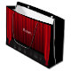 En bild av ett teaterstadium med röda gardiner på en presentväska. ©2015charmainepaulson