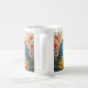 Cute personalized coffee mug for bird lovers with impasto painting style blue and green parakeets and flowers.