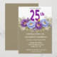 Pretty Blue and Purple Peony 25th Birthday Inbjudningar