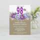 Celebrate a remarkable milestone with this elegant 98th birthday party invitation featuring a stunning floral design in rich purple and soft blue peonies accented with delicate greenery. Perfect for honoring a special woman, this sophisticated invitation blends timeless beauty with a modern touch, making it ideal for a memorable and heartfelt celebration.