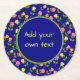 Pretty Blue Rose Pattern Custom Text Underlägg Papper Rund