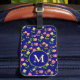 Pretty feminine floral pattern with blue background on personalized luggage tag.