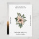 Double sided save the date card with a pretty floral design on one side with all the information about your upcoming wedding, and a photo of the two of you on the other side.
