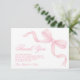 Designed with a hand-painted blush pink bow, and delicate climbing rose wallpaper pattern, this thank you card exudes romantic cottagecore charm with a modern coquette aesthetic. Ideal for baby girl showers, tea party celebrations, or garden-themed events, this design captures the essence of shabby chic elegance.