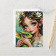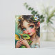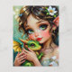Say hello with this enchanted postcard! A pretty anime fairy holding her cute baby dragon postcard. A beautiful fairy tale vibe in an enchanted setting ethereal art.