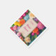 Beautiful and colorful tulips, roses and hydrangeas highlight these floral text box framed beverage napkins.
