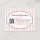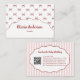 Trendy vintage-inspired pink red bow stripe pattern business card created for pretty, girly, feminine brands. Ideal for handmade baby clothing boutiques, makeup artists, and small business owners. Includes stylish QR code placement for modern networking and eye-catching professional branding.