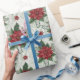 Pretty Green Toile Red Christmas Flower Pattern Wrapping Paper. Beautiful festive design. Perfect paper for crafting, gift wrapping and more.