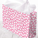 This pretty gift bag features simple, hand-drawn hearts, perfect for Valentine's Day, wedding anniversaries, birthdays, baby showers, Mother's Day, and other special occasions. Its cute, modern design makes it a lovely choice for your girlfriend, wife, daughter, or best friend. An all over pattern gift bag, available with a matte or glossy finish. Printed colors: candy pink and white.