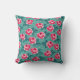 Pretty Pink Roses and Polka Dot Pattern on Teal Kudde