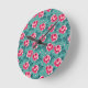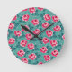 Pretty Pink Roses and Polka Dot Pattern on Teal Rund Klocka