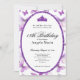 This elegant purple and white 18th birthday invitation has butterflies, a tiara crown, and a purple glitter oval with a personalizable template to create your own message. The invitation template is customizable in the listing editor and is also available as a digital download that's printable after you personalize it. It's a classic style that's perfect for a fun family event to celebrate a milestone birthday.