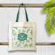 Cute, personalized garden tote in a pretty, blue and green watercolor floral design.