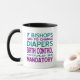 Liberala, progressiva, demokrater och/eller pro-Obama-ord läses, "Om biskopar måste byta blöjor skulle preventivmedel vara obligatoriska." Teal och lila text. Ungefär 10x10 kvadrat.