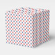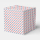 Denna presentask är visad med ett rött, vitt och blått pricktryck.