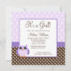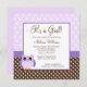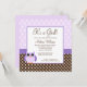 En gullig och modern inbjudan för ugglaflickadusch. Presentera polka dots och randar skuggar in av lilor, brunt och vit.