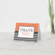 Stilrena, allmänna tackkort med vita prickar över orange på toppen och ett svart & vitt sicksackmönster på botten. Insidan kan anpassas med ditt eget personliga meddelande eller enkelt raderas för att lämna kortet tomt för handskrivet meddelande.