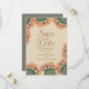 Lägg märke till bröllop med datumkorten! De har en elegant i elegant ökenen blommar prickly pear cactus design i vackra skal, rosa och taupe.