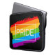 Den här teckningen har en färgstark regnbåge med Pridet ord.