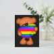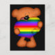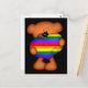 Ett litet vykort av en liten nalle som håller ett stort regnbåge av pridet