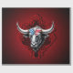 Pride och styrka, en amerikansk tjur med en flagga bandana. Tjuren har en slående vit ansikte, som är slående i sin detaljerade och verklighetstrogna beskrivning. Dess svarta näsa utgör en skarp kontrast till dess vita päls, medan dess långa vita horn stiga upp i stor utsträckning uppåt och ger djuret en stark närvaro. Tjuren bär en bandana med den amerikanska flagga över sitt ögon och bugar bilden med ett patriotiskt och stolt uttryck. Samspelet mellan realism och symbolisk design förmedlar styrka, mod och nationell solidaritet.