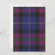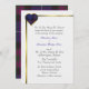 Vacker skotsk tartanrutig bröllopsinbjudan, gjord med vit bakgrund och guldfärgade accentlinjer, överst och till vänster på inbjudan. Ett utskuret guldfärgat ramhjärta, i det övre vänstra hörnet, visar den vackra Pride of Scotland moderna rutan genom. Den vackra lila rutan täcker baksidan av inbjudan. Anpassa texten för ditt bröllop.