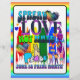 Sprid Kärlek Poster inte för Pride månad. Grafik: hjärtan, regnbåge, fredstecken.