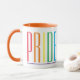 Designen på denna vita PRIDE-keramikmugg med orange handtag och insida är ordet PRIDE i regnbågens färger. Bilden finns på båda sidor. * Andra muggar och matchande produkter finns tillgängliga i kategorin COLORS i min butik. ** Om du vill överföra denna design till en annan produkttyp, form eller storlek, kontrollera min butik först för att se om jag redan har gjort en, eftersom jag har mixtrat med den för att få designen att passa precis rätt och det kommer att spara dig besväret. Ibland fungerar designöverföringar bra, ibland inte. Bara så du vet.