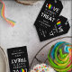 Charming LGBT bröllopsgåva märkre i svart med ett regnbåge pride hjärta och böjd text. Märkrn för bröllopsgåva med Kärlek är söt och pridets hjärtefråga, som ersätter O i kärlek. Anpassa med namn i brudgummen och din bröllop-dejt.