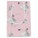 Vackert vattenfärgstryck prima ballerina i vit svan-dräkt, med ro och snöflingor på rosa papper.