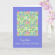 Ett födelsedagskort från februari för en Niece, med mönster av djupa rosor, djupblåa prirosor och gult, februari måndag, från en handmålad design av Judy Adamson.