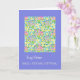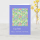 Ett födelsedagskort för en söt från februari för en partner, med en mönster av djupa rosor, djupblåa priroser och gulter, februari måndag blomma, från en handmålad design av Judy Adamson.