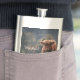 Fotografi av höstgräs i höstkalven fält. Den unga kalven av höstskotska nötkreatur på höstgrassi fält med muterat färg. Vackra orangar i mörk jackar kontrastera med lätt gräs i gult och träd i bakgrunden. Anpassningsbarnas anpassningsbara monogram med ditt namn och initalt på den lämnat.
