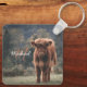 Fotografi av höstgräs i höstkalven fält. Den unga kalven av höstskotska nötkreatur på höstgrassi fält med muterat färg. Vackra orangar i mörk jackar kontrastera med lätt gräs i gult och träd i bakgrunden. Anpassningsbarnas anpassningsbara monogram med ditt namn och initalt på den lämnat.