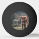 Fotografi av höstgräs i höstkalven fält. Den unga kalven av höstskotska nötkreatur på höstgrassi fält med muterat färg. Vackra orangar i mörk jackar kontrastera med lätt gräs i gult och träd i bakgrunden. Anpassningsbarnas anpassningsbara monogram med ditt namn och initalt på den lämnat.
