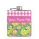 En söt Hip-kolv som du kan anpassa med en mönster av rosa, gult och blåa primerer, som har ett matchande rosa-band där du kan lägga till text om du vill. En del av Posh & Painterly 'Primroses'-samlingen.