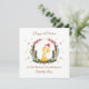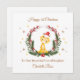 Julkortet är lämpligt för en flicka eller pojke på deras första eller andra jul. Utformningen omfattar vattenfärgen snöflingor, stjärnor och en julkrans med en baby giraff inuti.