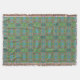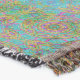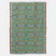 Ett dynamiskt, symmetriskt mönster fyller utrymmet och har en skarp cirkelformad utformning i olika skuggor av grönt, blått och rosa. Repetitivt inslag skapar en kaleidoskopisk effekt som fångar tittarens uppmärksamhet.